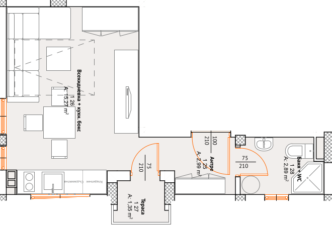 Етаж 1Тристаен Апартамент № 5114.44 кв.м Северо-изток СвободенВиж