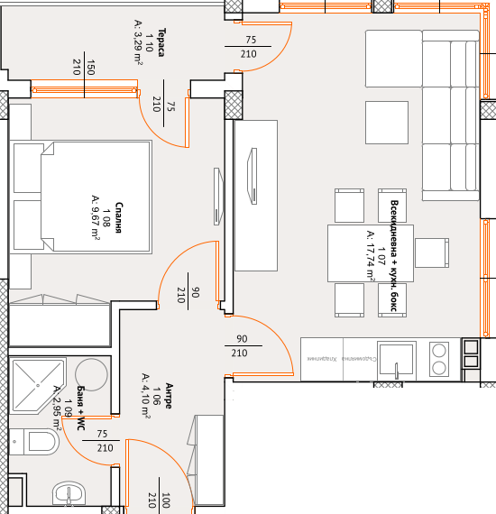 Етаж 1Двустаен Апартамент № 977.95 кв.м Юг СвободенВиж