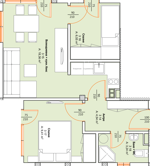 Етаж 3Двустаен Апартамент № 1766.38 кв.м Изток СвободенВиж